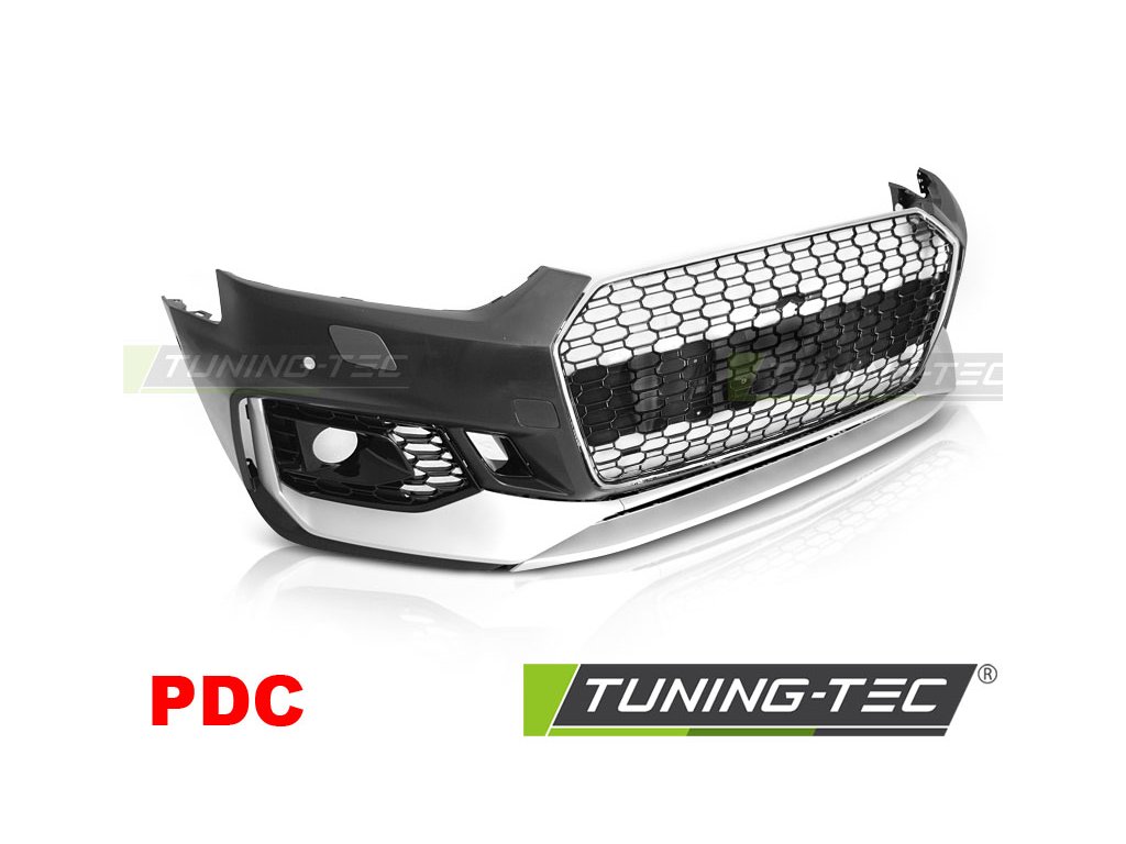 PŘEDNÍ NÁRAZNÍK SPORTOVNÍ CHROMOVANÝ STŘÍBRNÝ S PDC PRO AUDI A5 16-19