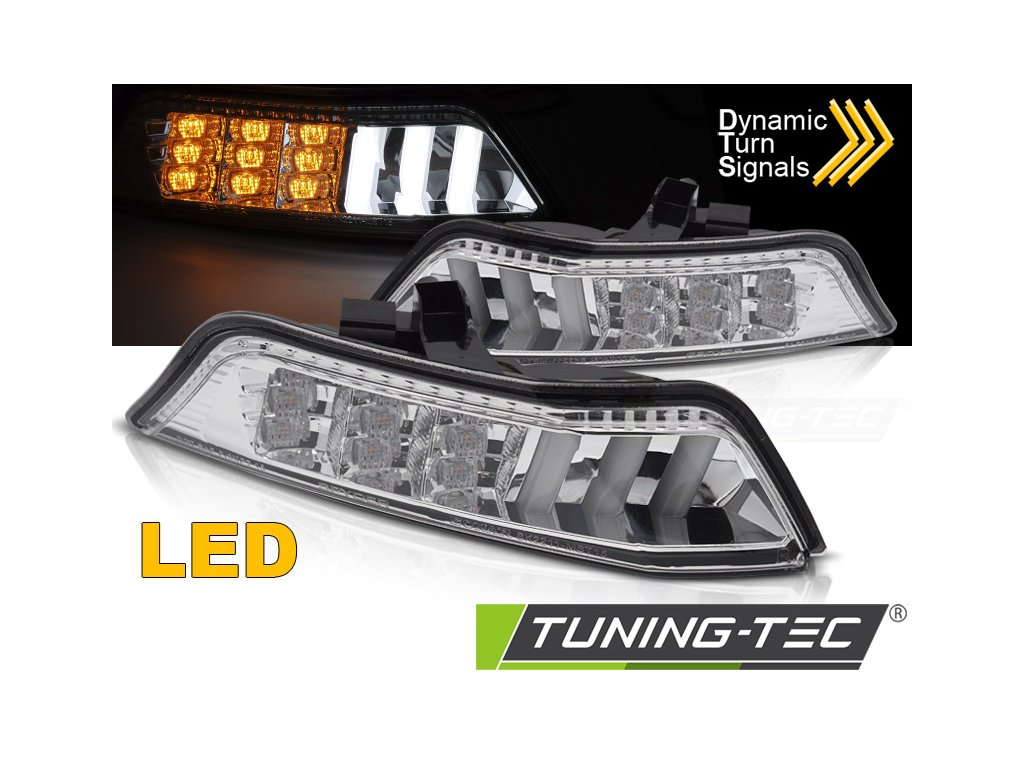 PŘEDNÍ SMĚROVÁ CHROMOVANÁ LED SVĚTLA SEQ pro FORD MUSTANG 15-17