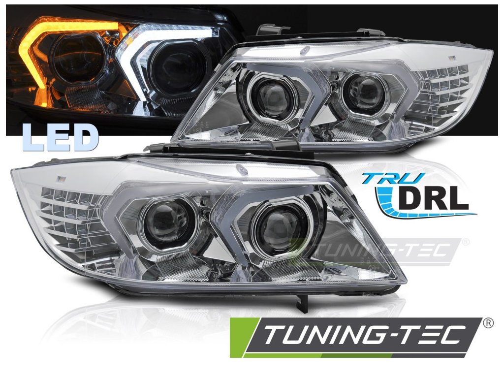 CHROMOVANÉ PLNÉ LED SVĚTLOMETY PRO BMW E90/E91 05-08