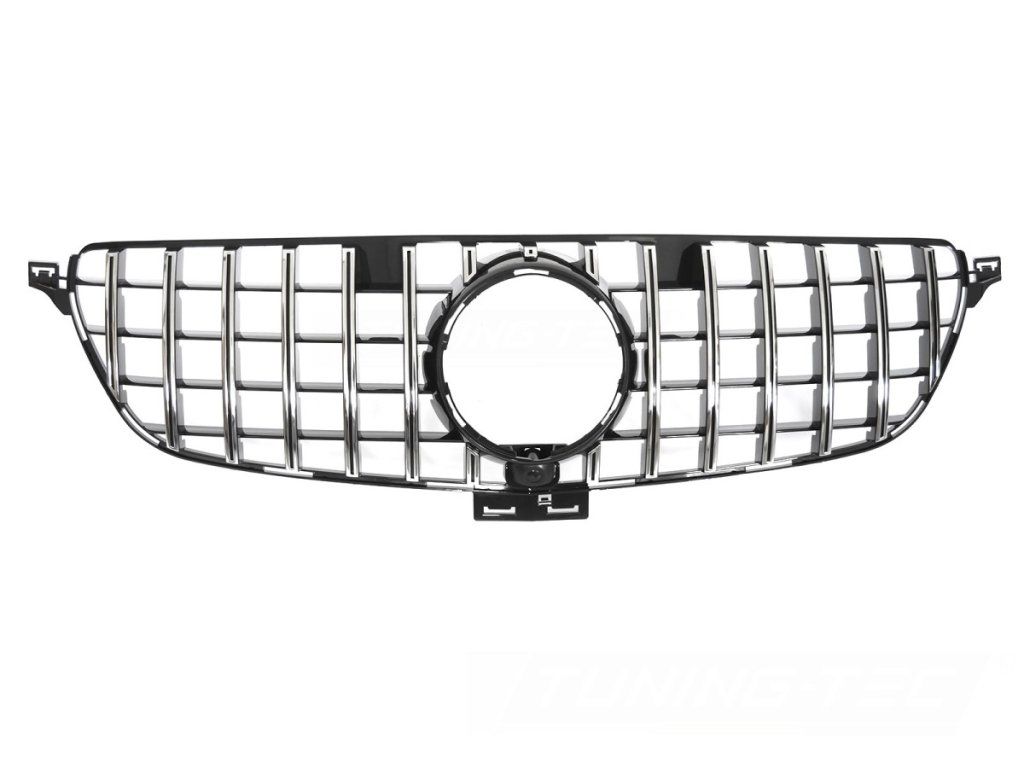 Přední maska GT STYLE v provedení lesklá černá s chromovými prvky dodá vašemu vozu Mercedes GLE moderní a sportovní vzhled. Jedná se o kvalitní náhradu originální mřížky chladiče se zachováním plné funkčnosti.