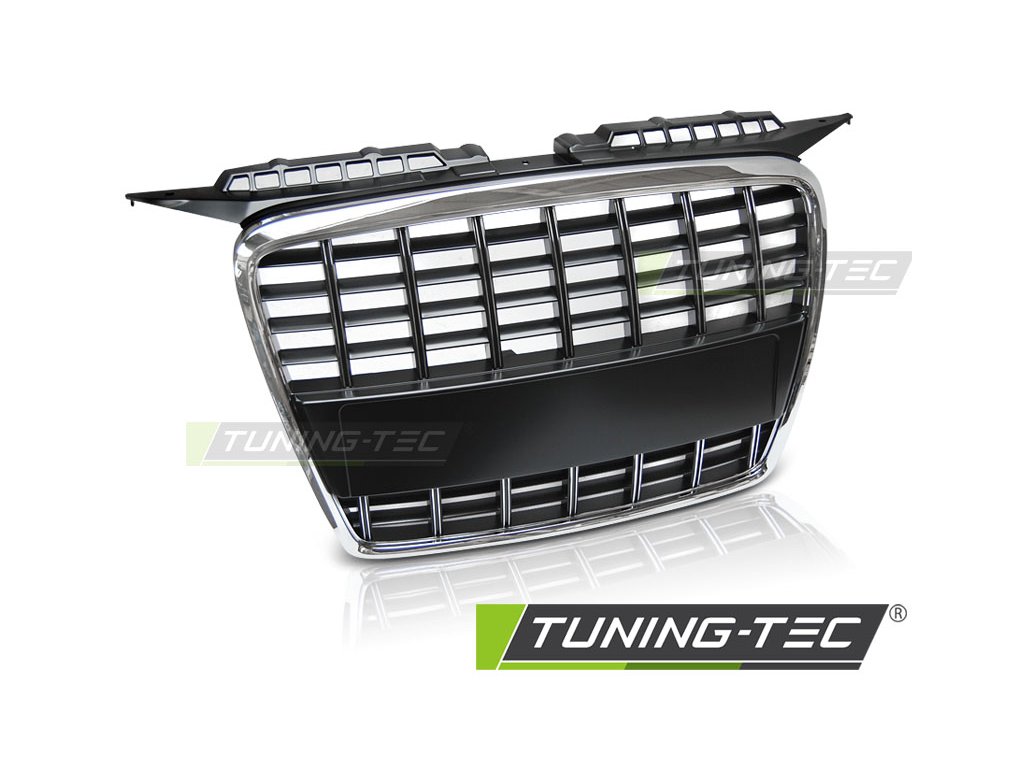 Přední maska SPORTCHROME ČERNÝ Vhodné pro: AUDI A3 8P 05-08 HATCHBACK / SPORTBACK Pouze standardní nárazník. Nepasuje na verze S-Line a S3. Sada obsahuje: - držák loga