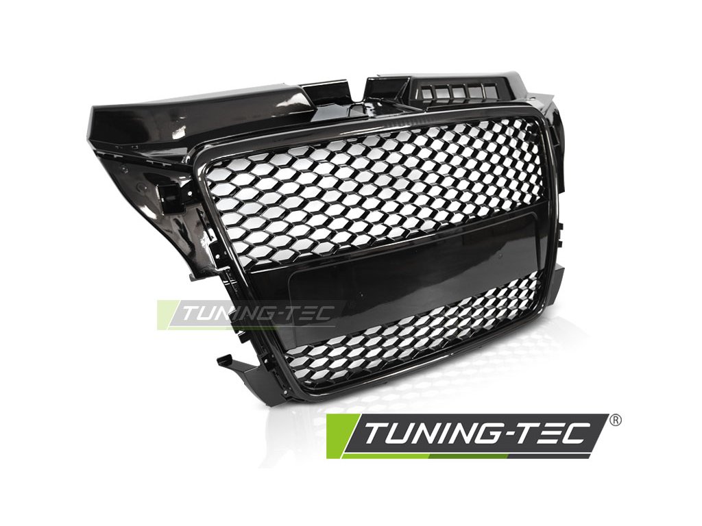 Přední maska SPORTGLOSSY ČERNÝ Vhodné pro: AUDI A3/S3 8P 08-12 HATCHBACK / SPORTBACK / CABRIO Standardní nárazník a S-line. Sada obsahuje: - držák loga