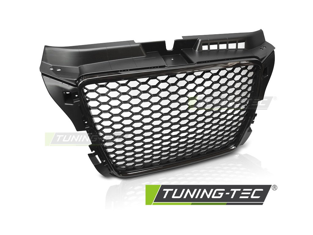 Přední maska SPORT GLOSSY ČERNÝ RÁM Vhodné pro: AUDI A3/S3 8P 08-12 HATCHBACK / SPORTBACK / CABRIO Standardní nárazník a S-line. Sada obsahuje: - držák loga - rámeček SPZ