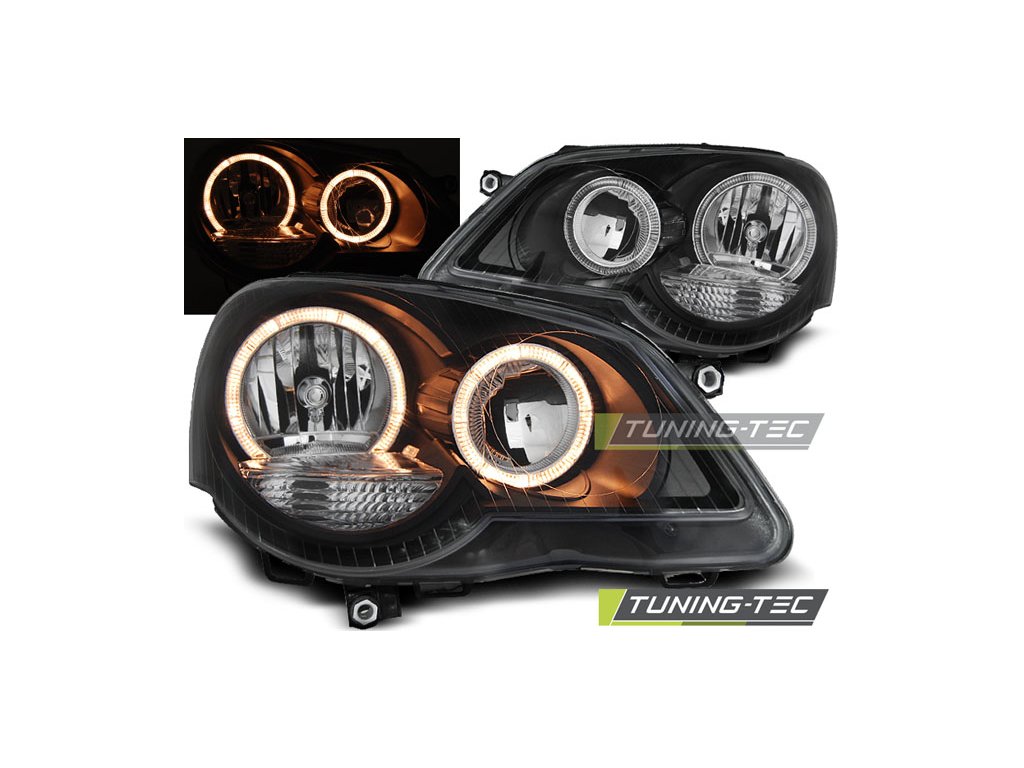 SVĚTLOMETY ANGEL EYES ČERNÉ, pasují na VW POLO 9N3 04.05-09