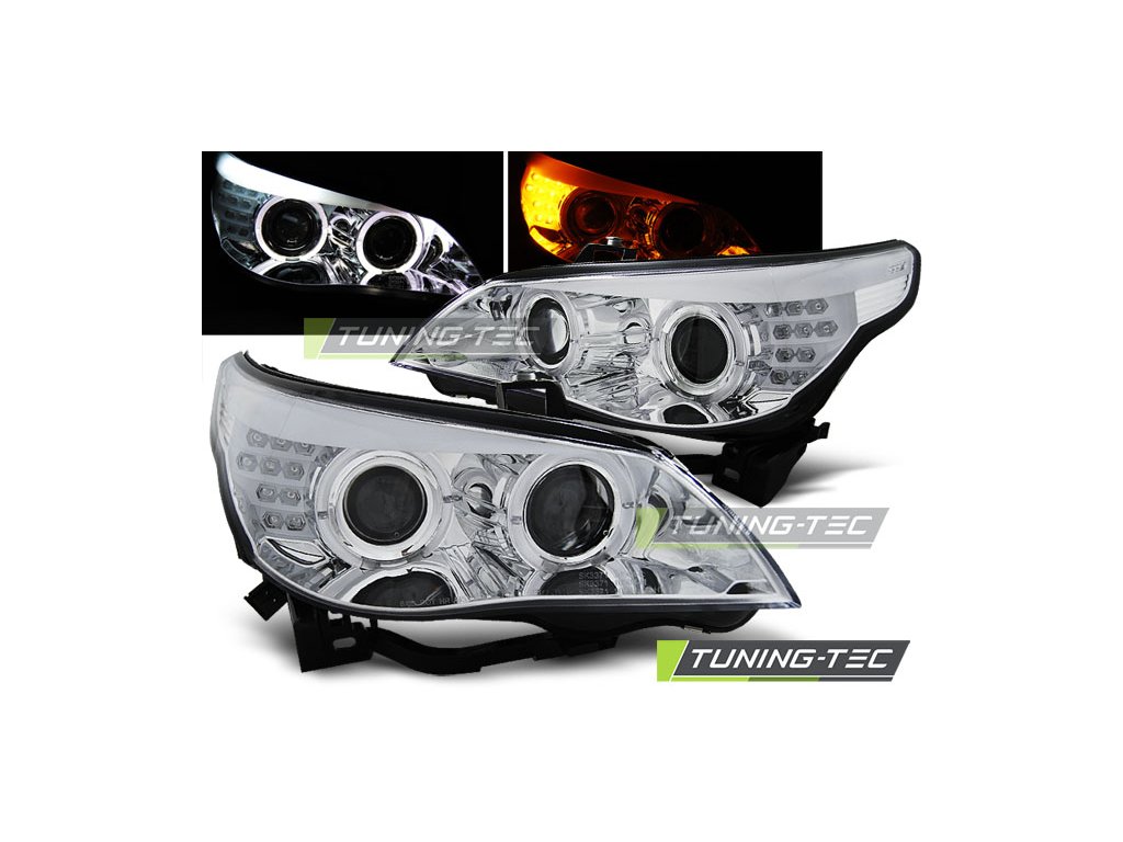 SVĚTLOMETY ANGEL EYES CHROMOVANÉ, pasují na LED SMĚROVÉ BLIKY BMW E60/E61 03-07