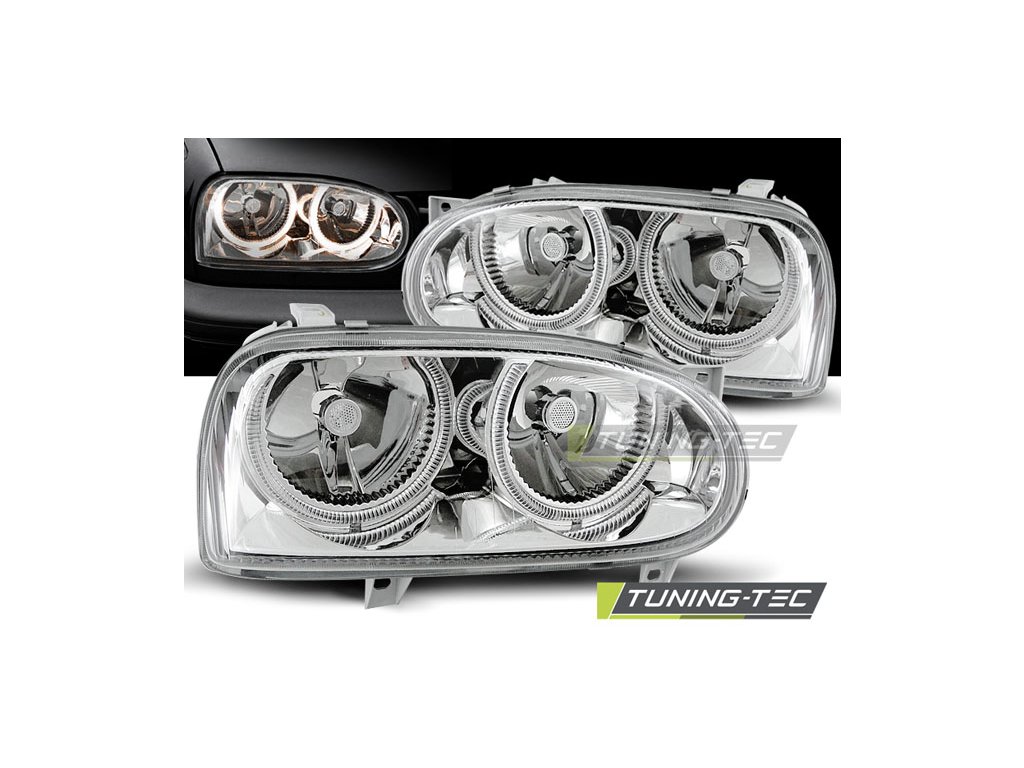 SVĚTLOMETY ANGEL EYES CHROMOVÉ PRO VW GOLF 3 09.91-08.97