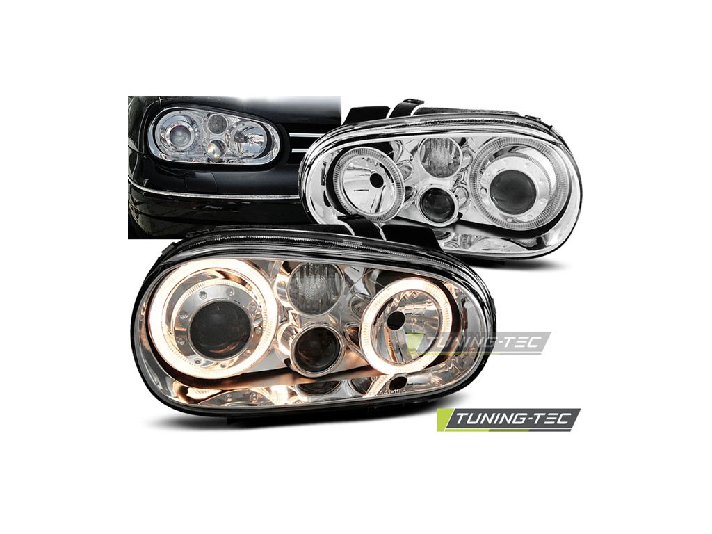 SVĚTLOMETY ANGEL EYES CHROMOVÉ PRO VW GOLF 4 09.97-09.03