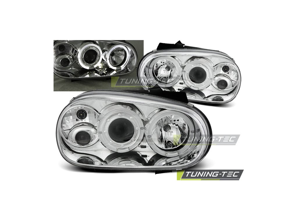 SVĚTLOMETY ANGEL EYES CHROMOVÉ PRO VW GOLF 4 09.97-09.03