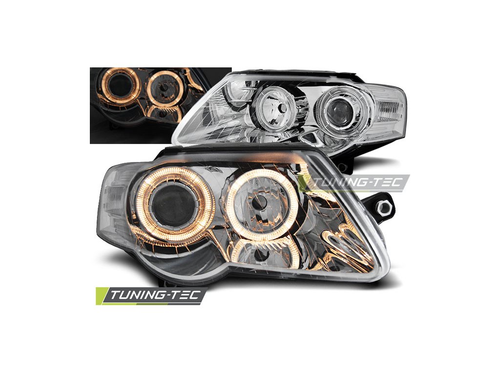 SVĚTLOMETY ANGEL EYES CHROMOVÉ PRO VW PASSAT B6 3C 03.05-10
