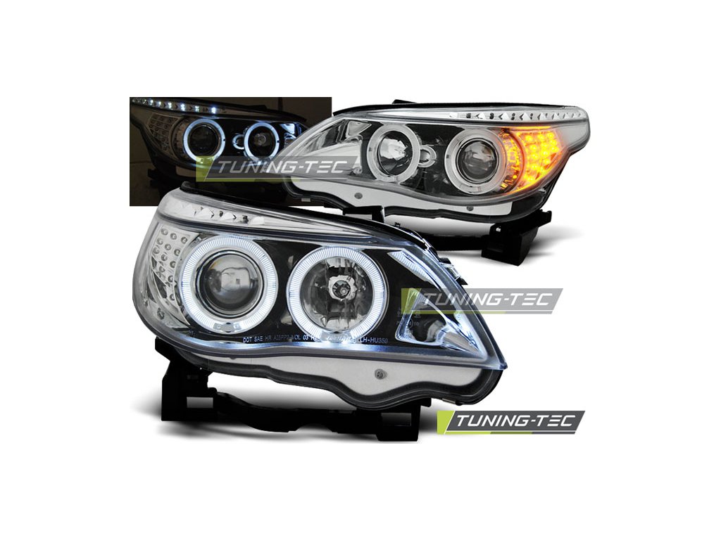 SVĚTLOMETY ANGEL EYES CHROMOVANÉ LED SMĚROVÉ BLIKY PRO BMW E60/E61 03-07