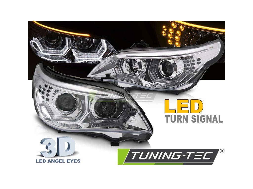 SVĚTLOMETY ANGEL EYES LED 3D CHROM PRO BMW E60 E61 03-07