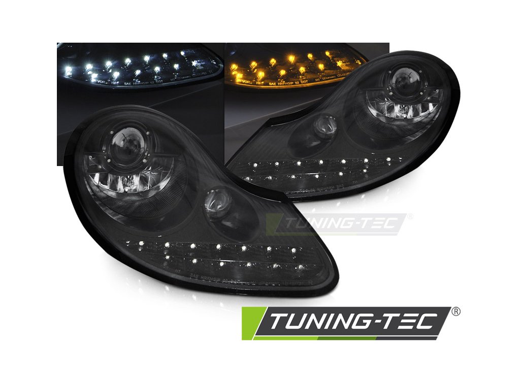 DENNÍ SVĚTLOMETY CELÉ LESKLÉ ČERNÉ, vhodné pro PORSCHE BOXSTER 96-04 / 911 996