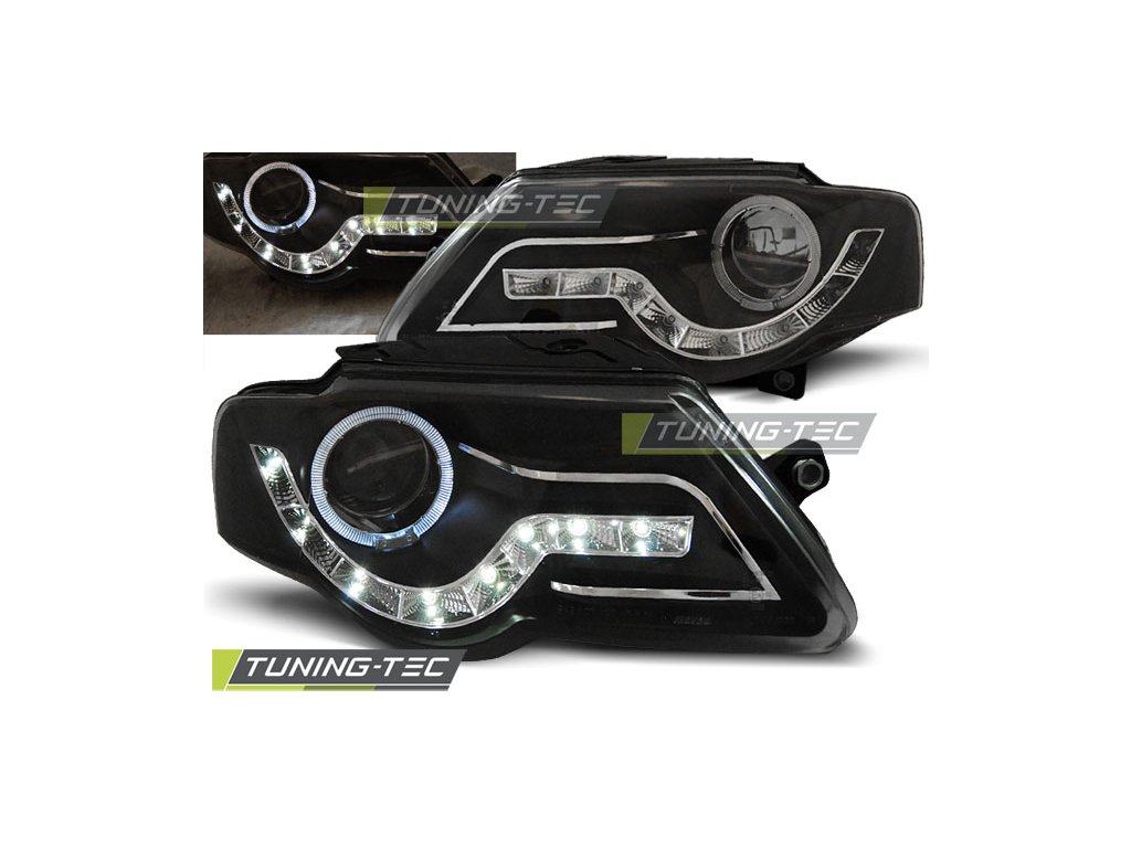 DENNÍ SVĚTLOMETY ČERNÉ, pasují na VW PASSAT B6 3C 03.05-10