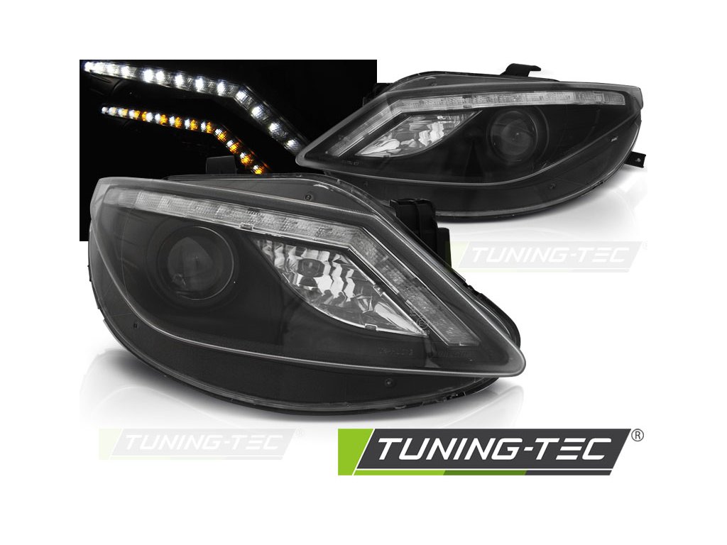 DENNÍ SVĚTLOMETY ČERNÉ s LED SMĚROVÝMI BŘÍVKY, vhodné pro SEAT IBIZA 6J 06.08-12