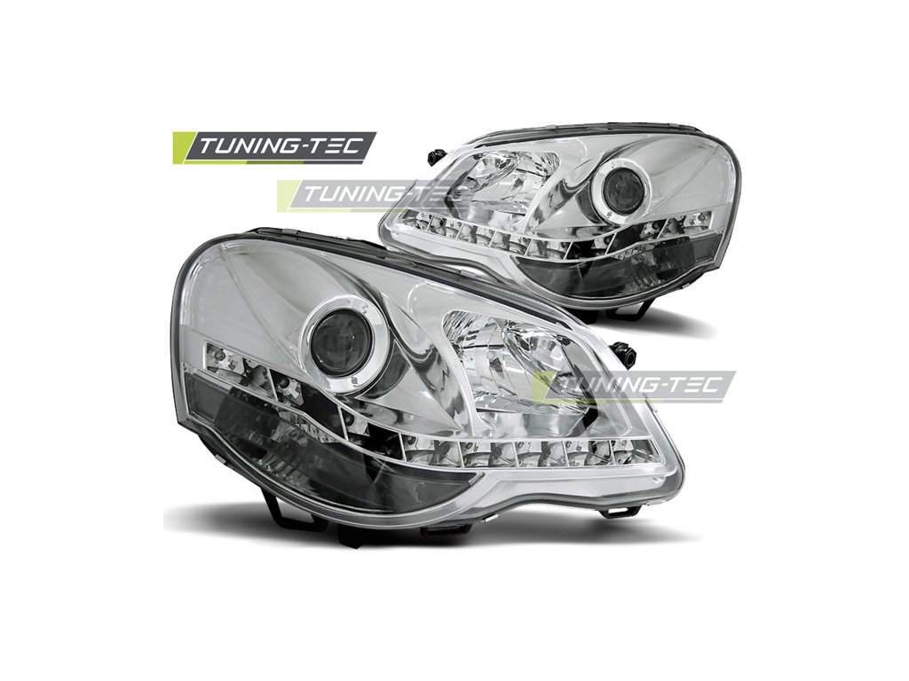 CHROMOVÉ DENNÍ SVĚTLOMETY PRO VW POLO 9N3 04.05-09