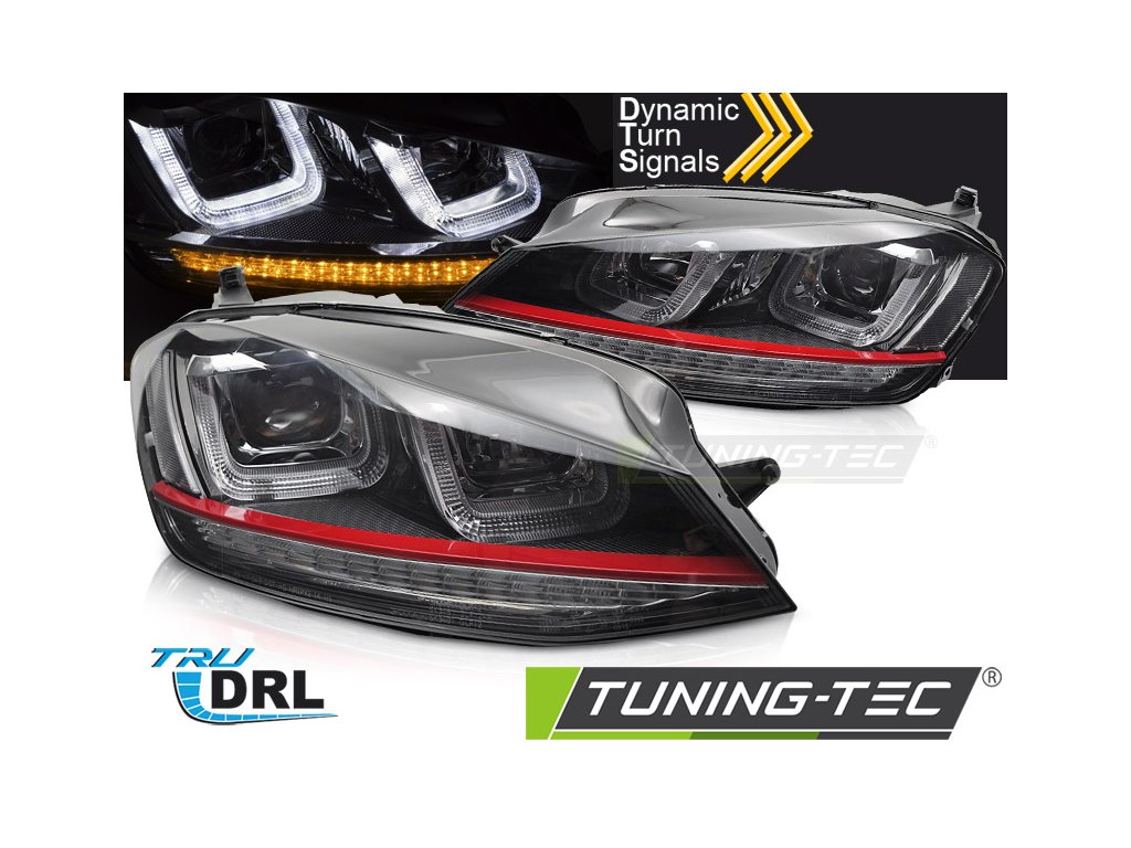 SVĚTLOMETY LIGHT SEQ ČERNÝ S ČERVENOU LINKOU PRO VW GOLF 7 13-17