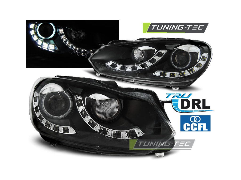 JEDNODUCHÉ SVĚTLOMETY PRO DENNÍ SVĚTLOMETY, ČERNÉ, PRO VW GOLF 6 10.08-12