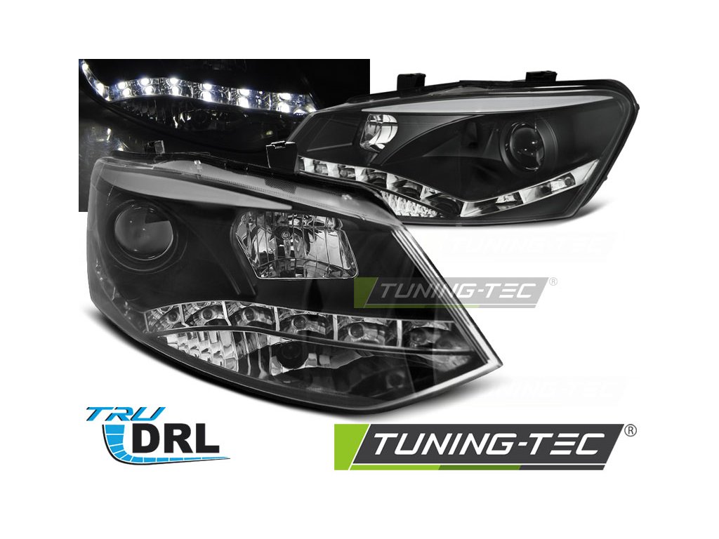 SVĚTLOMETY TRUE DRL ČERNÝCH PRO VW POLO 6R 09-03.14
