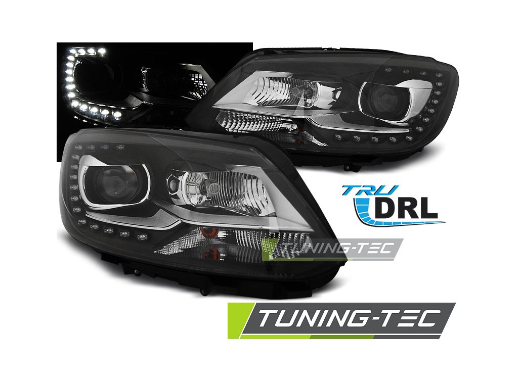 SVĚTLOMETY TRUE DRL ČERNÝ PRO VW TOURAN II 08.10-15