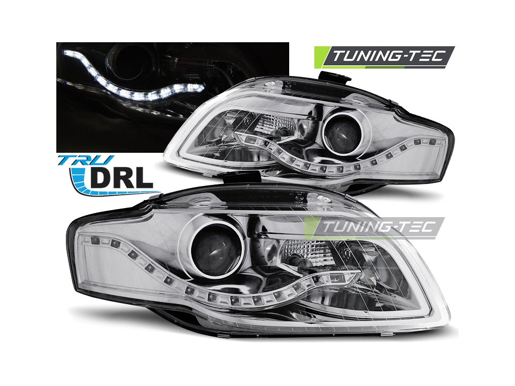 SVĚTLOMETY TRUE DRL CHROM PRO AUDI A4 B7 11.04-03.08