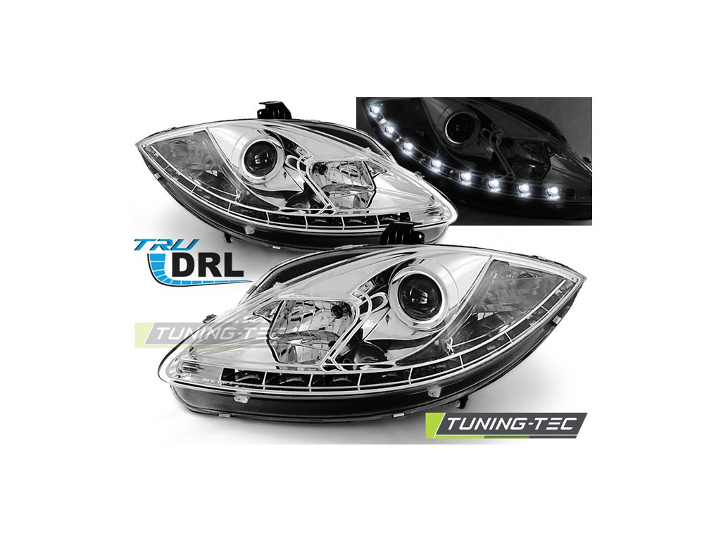 SVĚTLOMETY PRAVÉ DENNÍ SVĚTLOMETY CHROMOVANÉ PRO SEAT LEON ALTEA 09-12