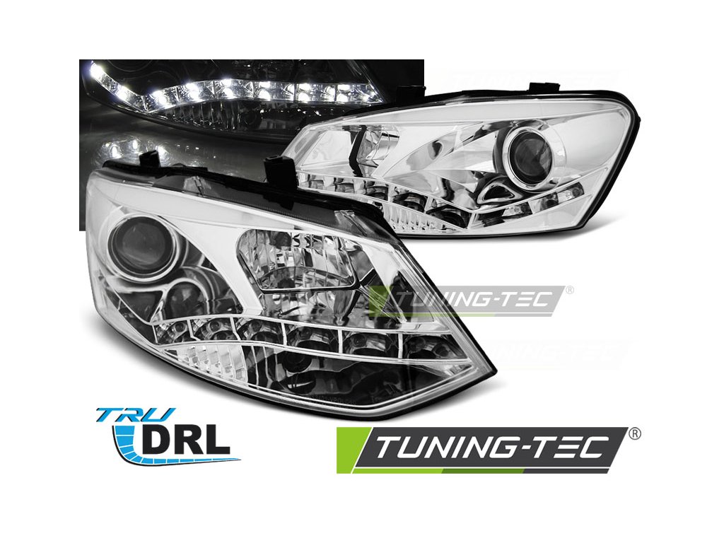 SVĚTLOMETY PRAVÉ DRL CHROMOVANÉ PRO VW POLO 6R 09-03.14