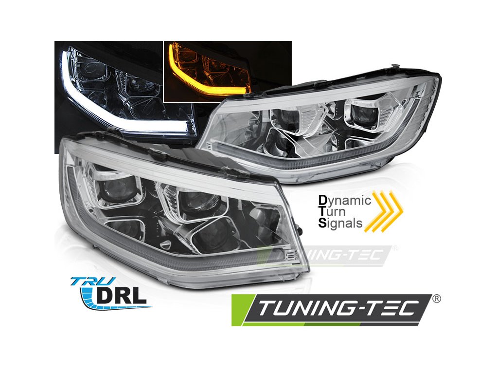 CHROMOVANÉ TRUBIČKOVÉ SVĚTLOMETY SEQ PRO DENNÍ SVĚTLA PRO VW CADDY 20-