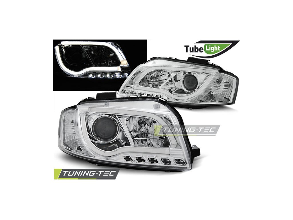 CHROMOVÉ TRUBIČKOVÉ SVĚTLOMETY PRO AUDI A3 8P 05.03-03.08