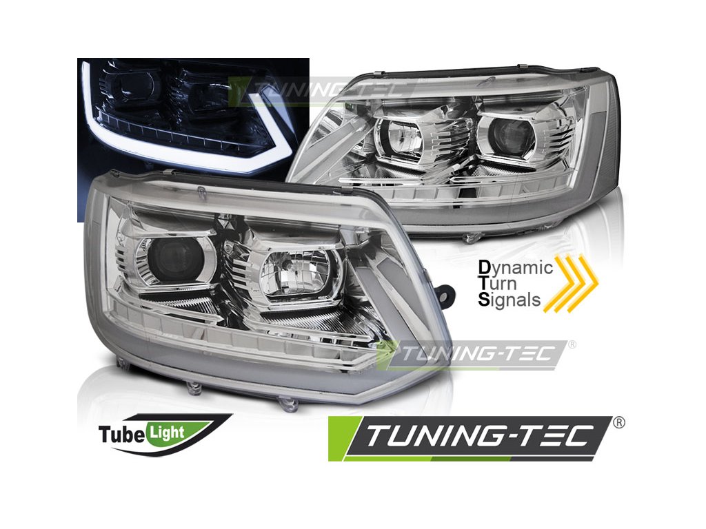 CHROMOVANÉ TRUBIČKOVÉ SVĚTLOMETY SEQ pro VW T5 2010-2015