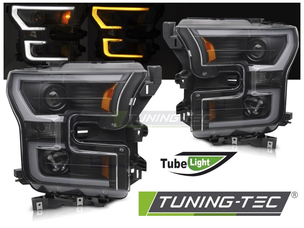 DVOJITÉ ČERNÉ TRUBIČKOVÉ SVĚTLOMETY PRO FORD F150 MK13 14-17