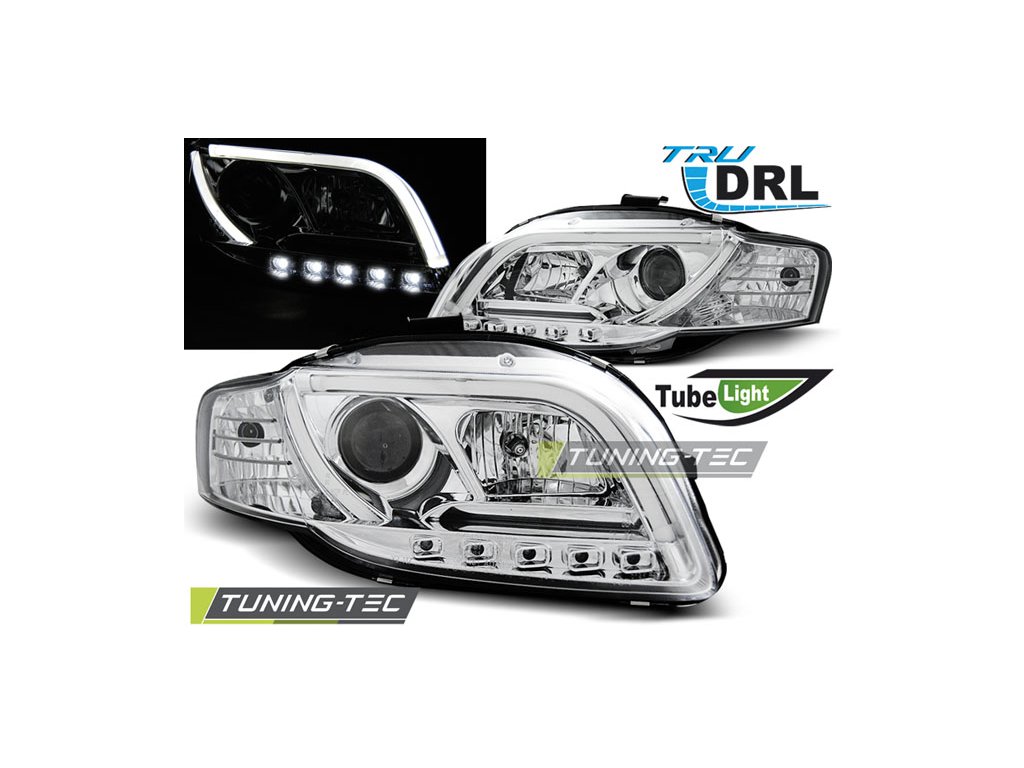 CHROMOVÉ TRUBIČKOVÉ SVĚTLOMETY PRO DENNÍ SVĚTLA PRO AUDI A4 B7 11.04-03.08