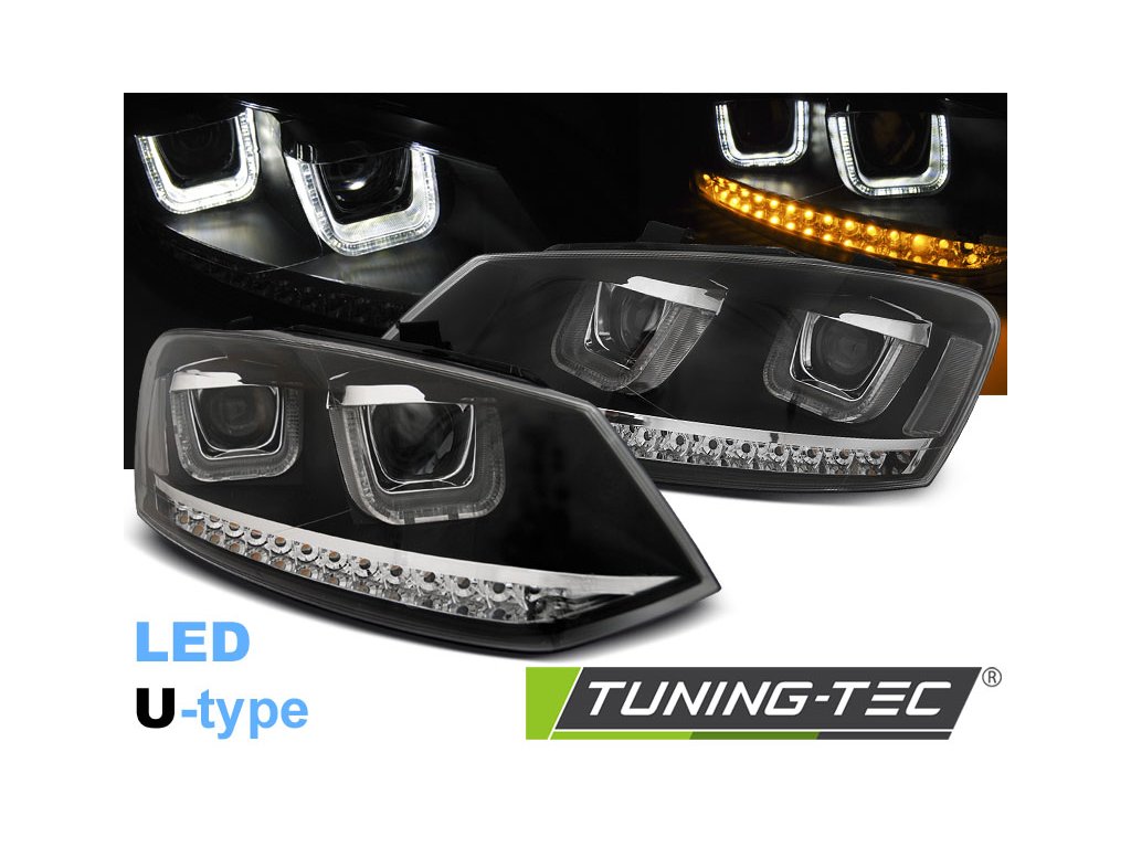 SVĚTLOMETY U-LED ČERNÉ, pasují na VW POLO 6R 09-03.14