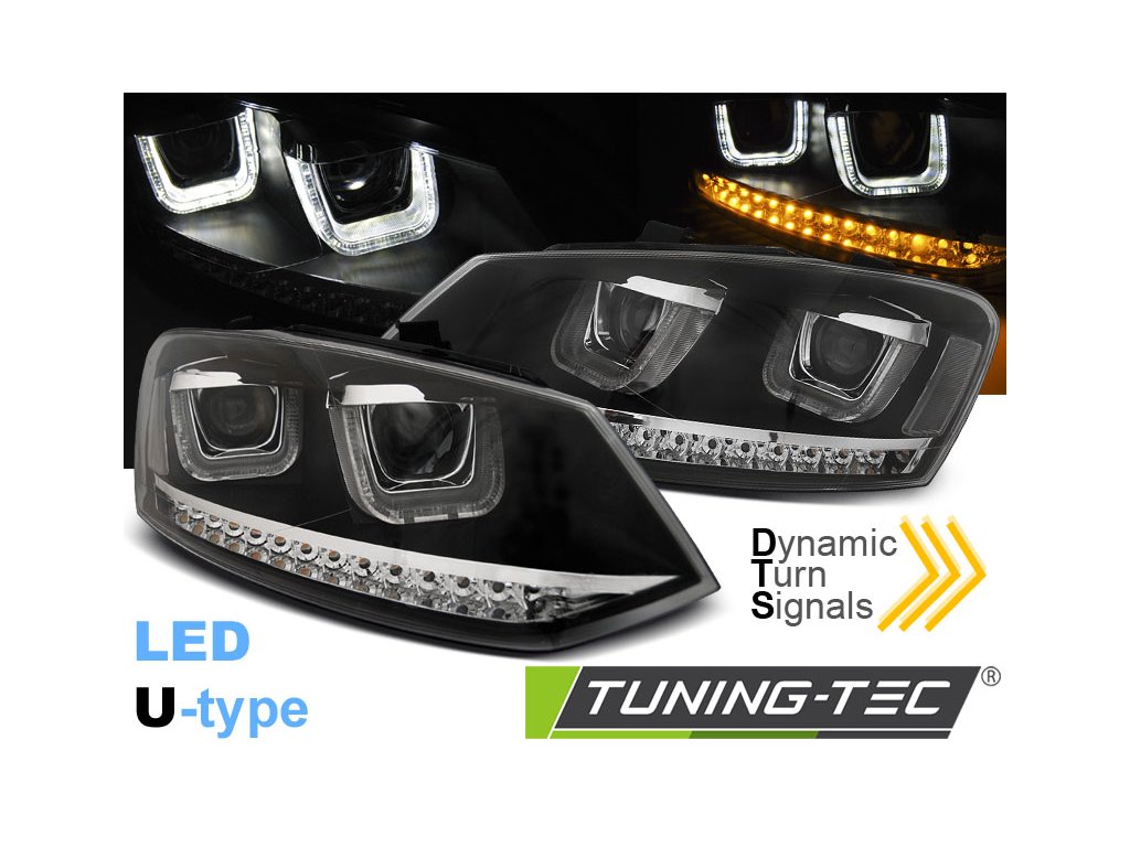 SVĚTLOMETY U-LED ČERNÝ SEQ pasují na VW POLO 6R 09-03.14