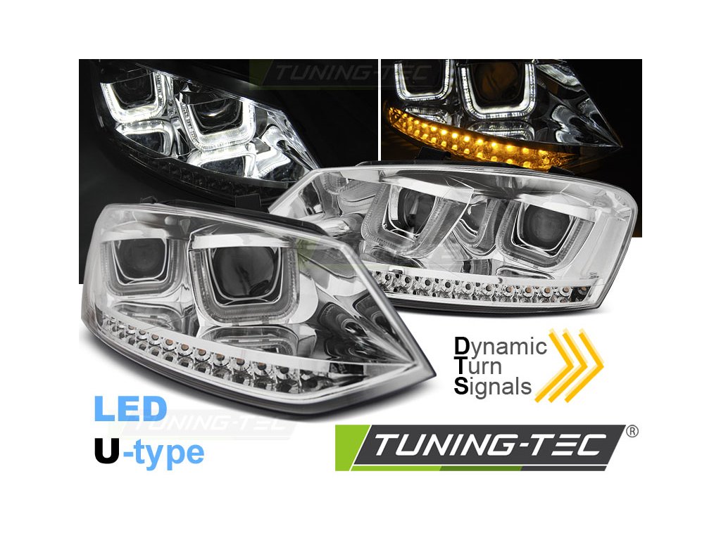 SVĚTLOMETY U-LED CHROM SEQ pasují na VW POLO 6R 09-03.14