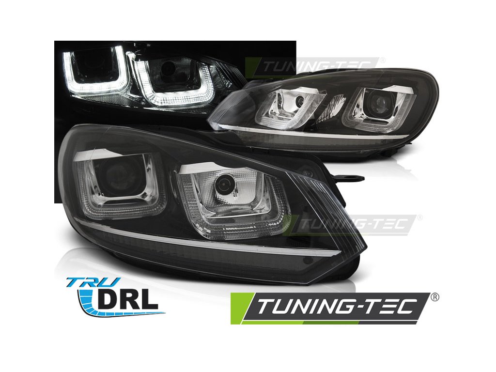 SVĚTLOMETY U-LED DRL ČERNĚ CHROMOVANÉ PRO VW GOLF 6 08-12