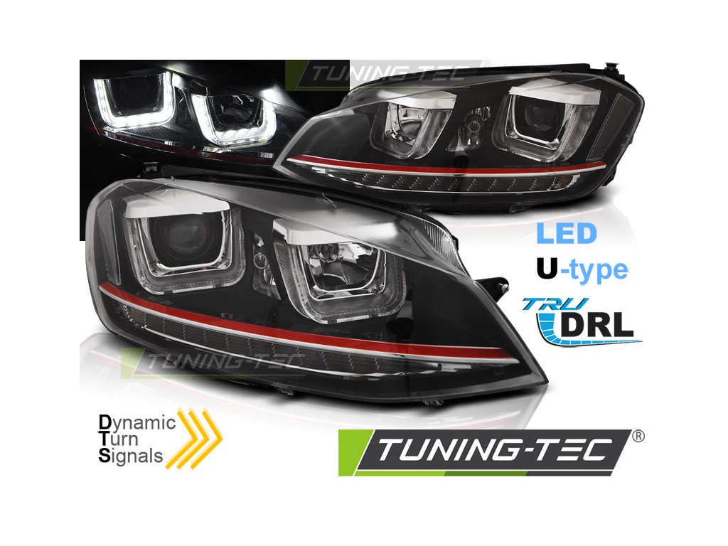 SVĚTLOMETY U-LED DRL ČERNÝ RDD LINE SEQ pro VW GOLF 7 11.12-17