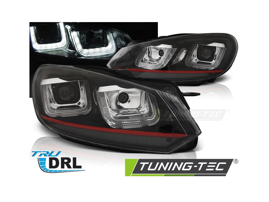 SVĚTLOMETY U-LED DRL ČERNÁ ČERVENÁ LINKA pro VW GOLF 6 08-12