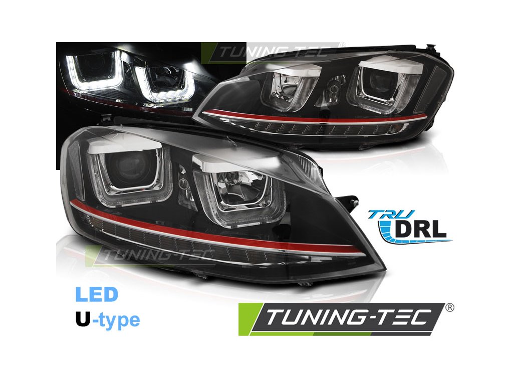 SVĚTLOMETY U-LED DRL ČERNÁ ČERVENÁ LINKA pro VW GOLF 7 11.12-17