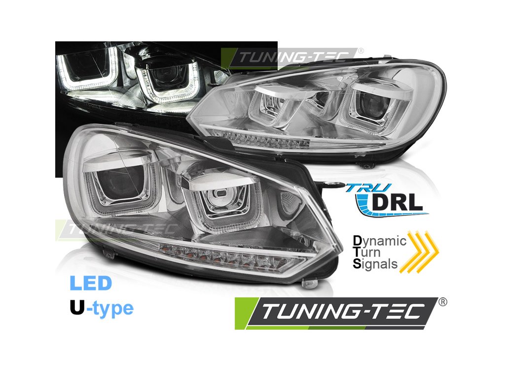 SVĚTLOMETY U-LED DRL CHROM SEQ pro VW GOLF 6 08-12