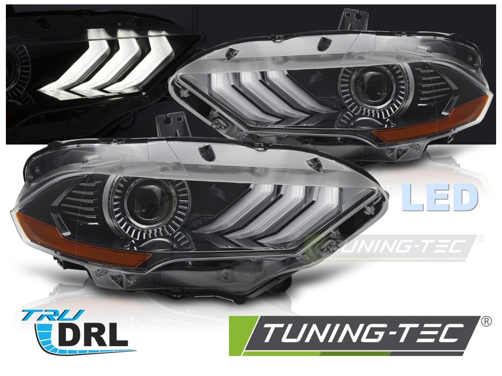 LED SVĚTLOMETY ČERNÝCH DRL PRO FORD MUSTANG 18-21