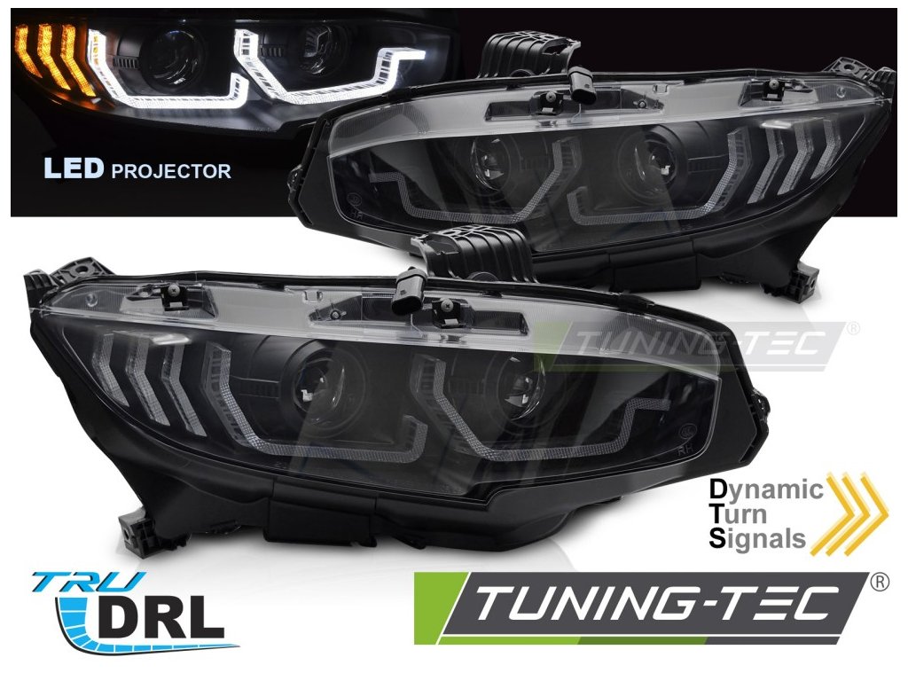 LED SVĚTLOMETY ČERNÝCH DRL SEQ PRO HONDA CIVIC X 16-21