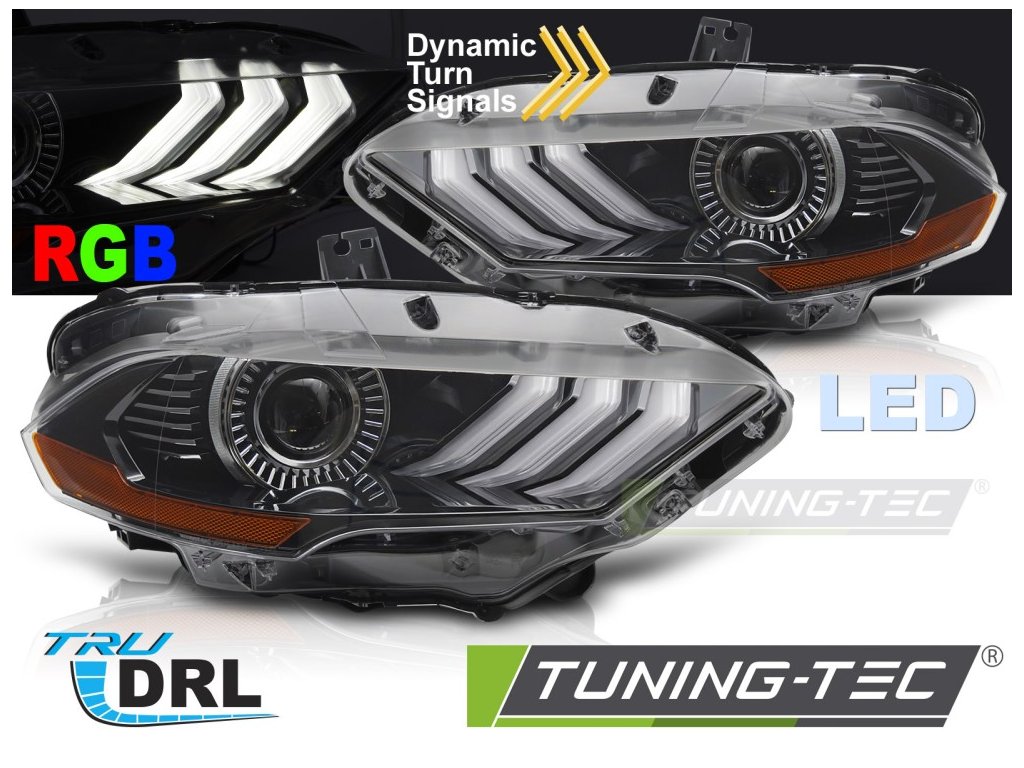 LED SVĚTLOMETY RGB DRL ČERNÉ PRO FORD MUSTANG 18-21