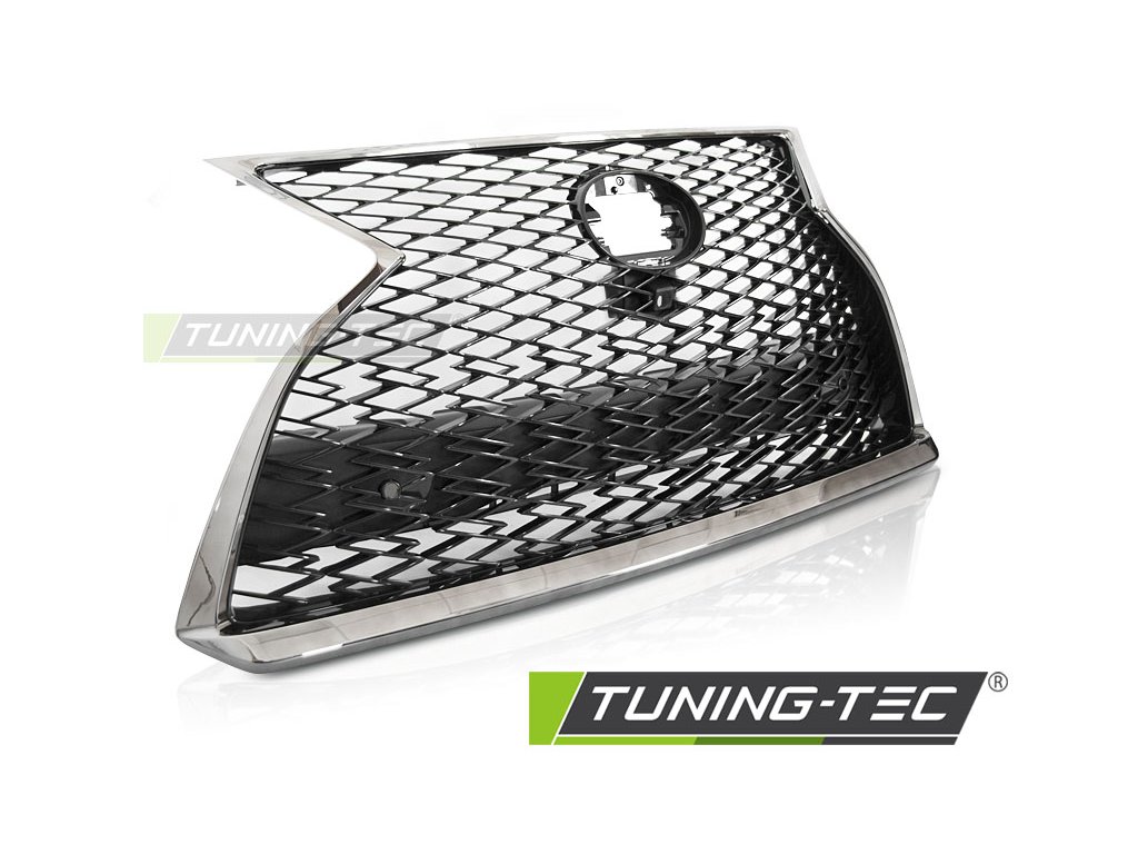 Přední maska SPORTOVNÍ STYLCHROMOVÁ ČERNÁS otvorem pro PDC senzor a přední kamerou. Vhodné pro: LEXUS RX 2019 - Standardní nárazník. Sada obsahuje: - montážní šrouby - rámeček SPZ PDC