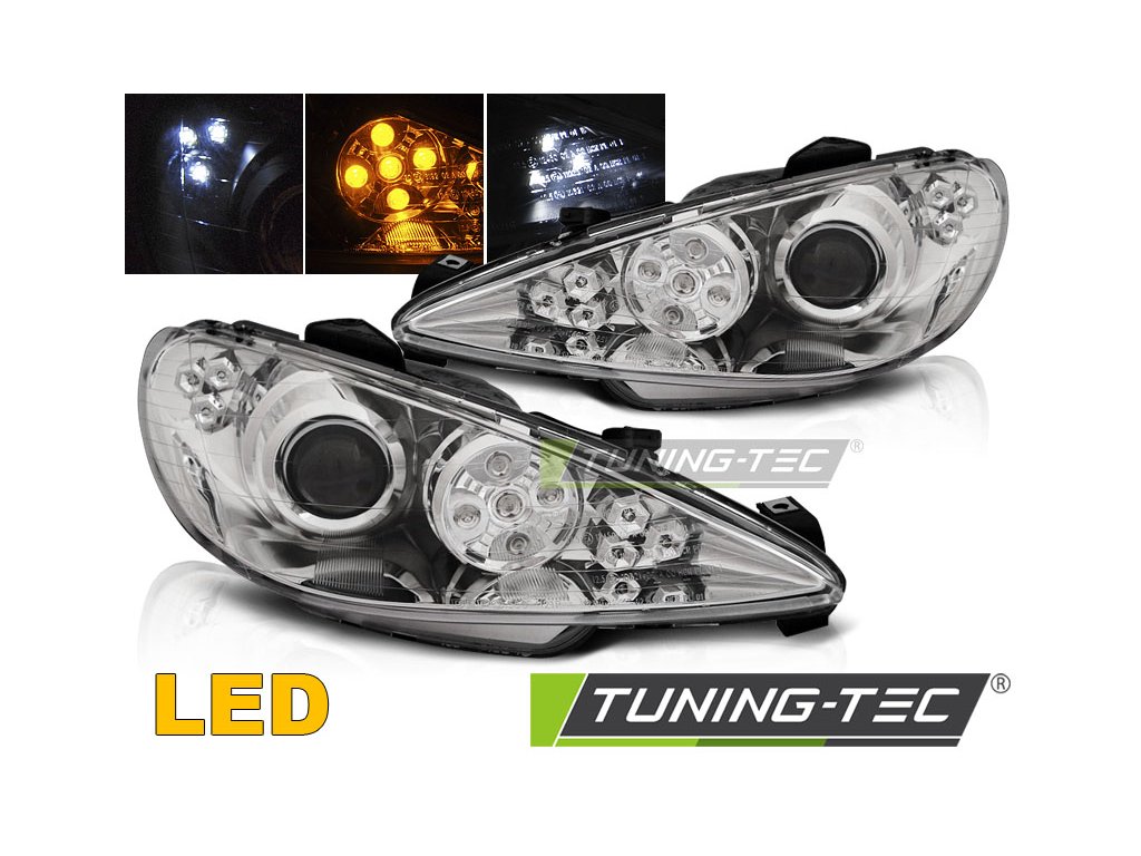 PEUGEOT 206 02-CHROMOVANÁ LED SVĚTLA ANGEL EYES