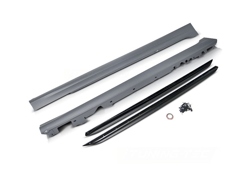 Boční prahy VÝKONNÝ VZHLED Vyrobeno z polypropylenu. Verze karoserie: G20 /G21 Sada obsahuje: - boční prahy - matně černý spoiler pro prahy - montáž