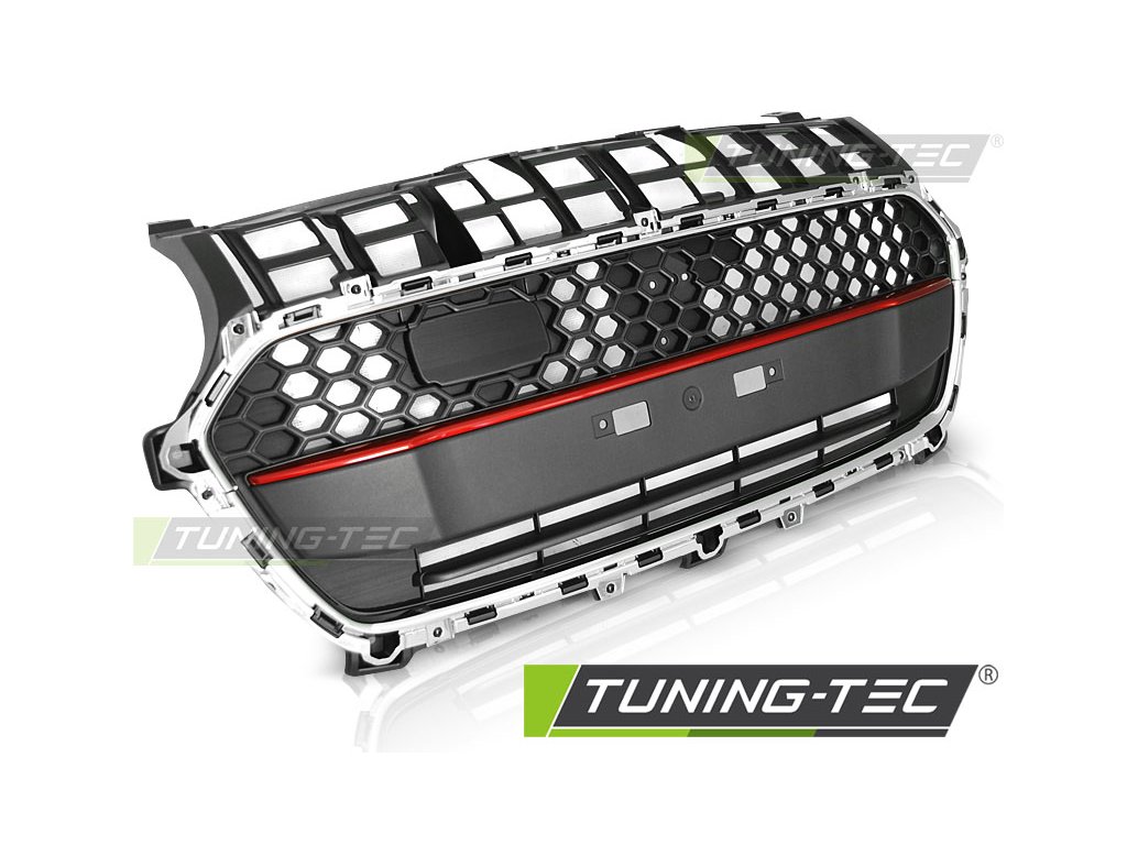 PŘEDNÍ MASKA SPORTOVNÍ STYLCHROMOVÁ ČERNÁ S ČERVENOU LINII Pasuje na logo z původní masky. Pouze pro verzi před faceliftem.