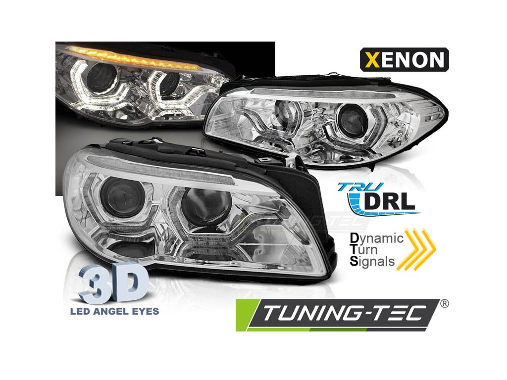 EN Description Bi-Xenon projector headlights with dual halo rimsand Daytime Running Lights (DRL).Only for model without AFS.Hi-Low projector type (low and high beam).100% brand new, come in pair (left right).Approval: E-marked E6 - approved, ECE-R87 approved. Details Parking light: LED Halo Rims DRL: LED Halo RimsBlinker: diodowyLow and high beam: D1S not included Regulation: electrical (with build-in electrical adjuster)ECU - Electrical Control Unit - not included(need to be replaced from original headlights) LED 3D ANGEL EYES TRU DRL XENON Dynamic Turn SignalBuďte první, kdo napíše příspěvek k této položce.