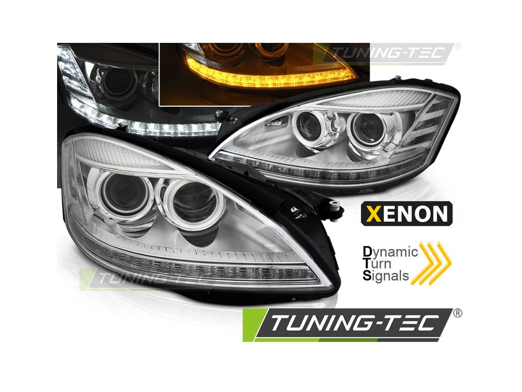 XENONOVÉ SVĚTLOMETY S DENNÍM SVĚTLOMETEM CHROM SEQ pro MERCEDES W221 05-09